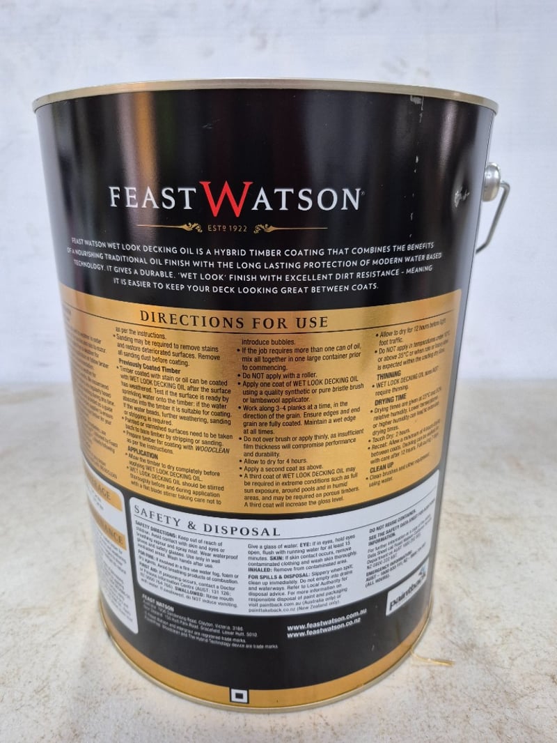 Paint, Feast Watson, Wet look Decking Oil, 10LBID PER LITRE, MUST TAKE 10 LITRES