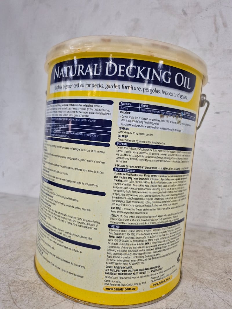 Paint, Cabot's Natural Decking, Exterior, Natural, 10 Litres BID PER LITRE, MUST TAKE 10 LITRES