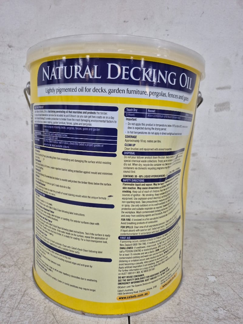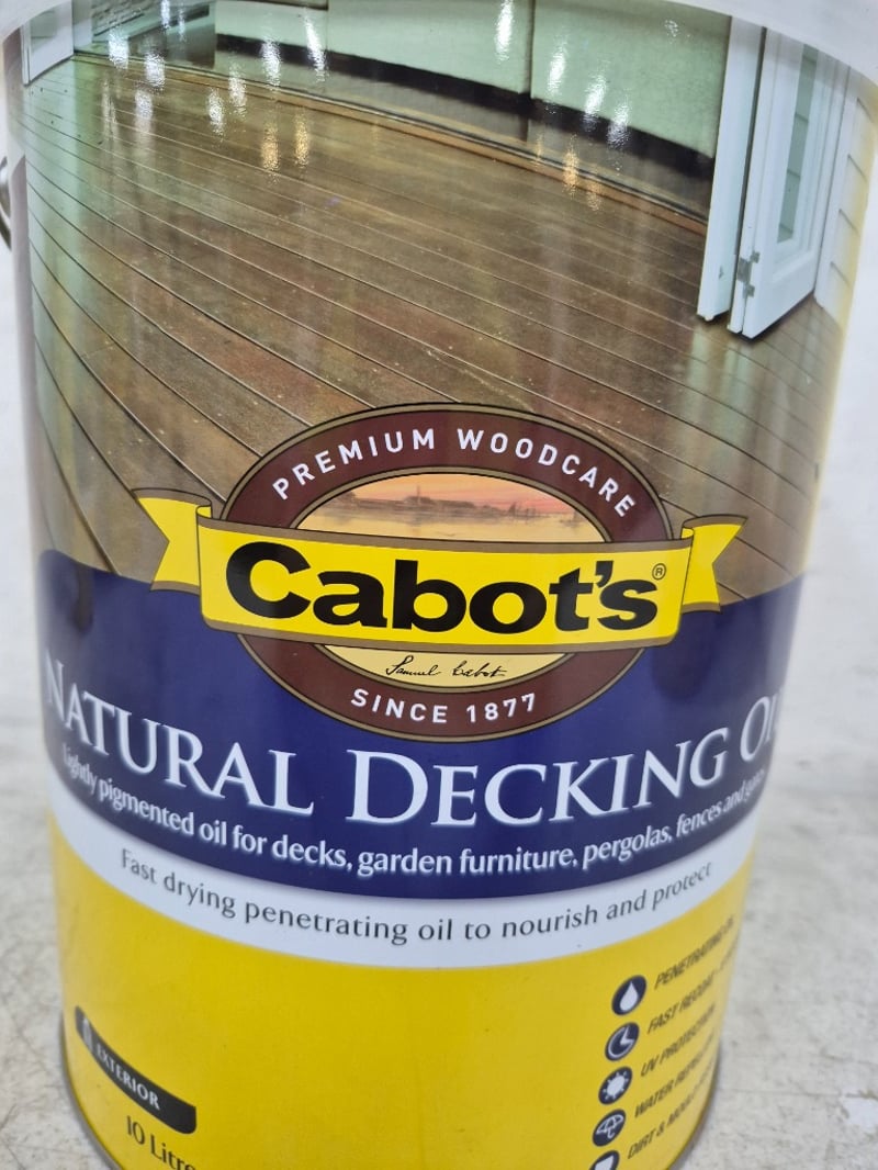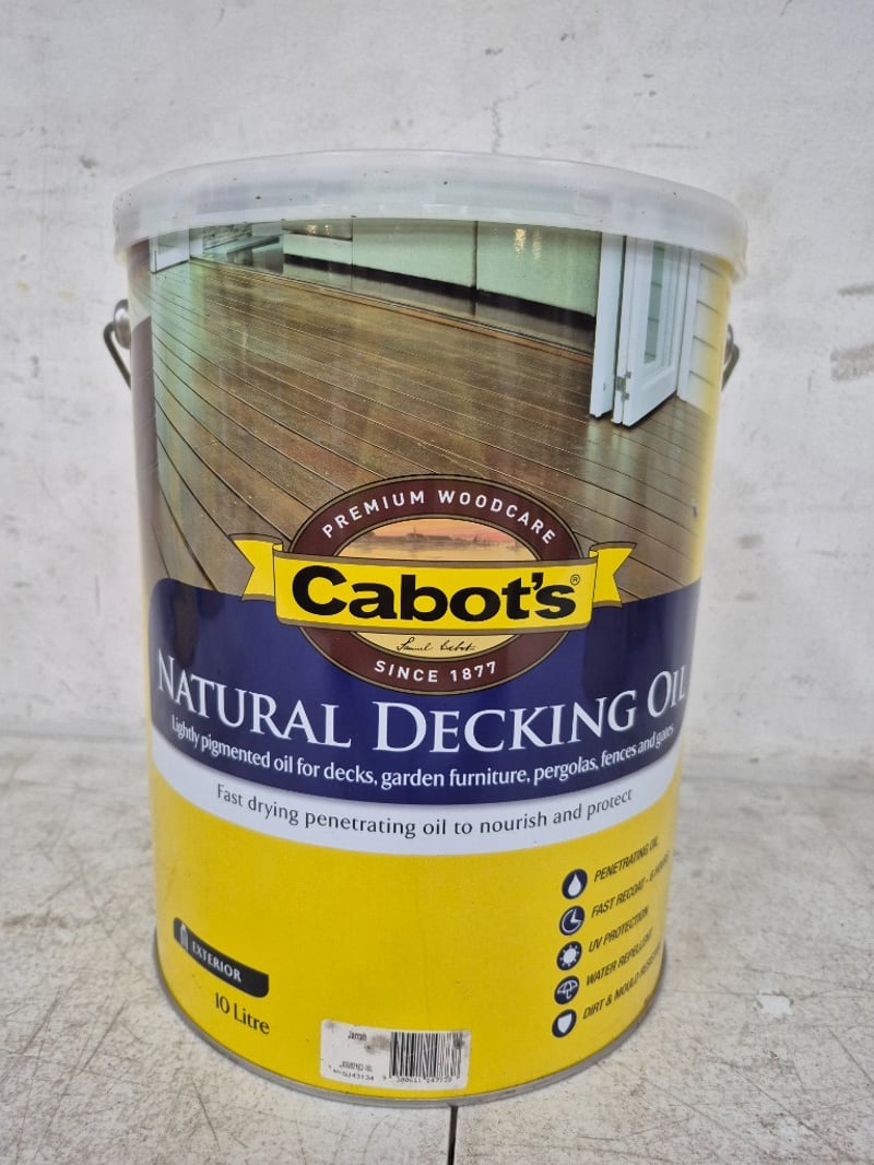 Paint, Cabot's Natural Decking, Exterior, Jarrah, 10 Litres BID PER LITRE, MUST TAKE 10 LITRES