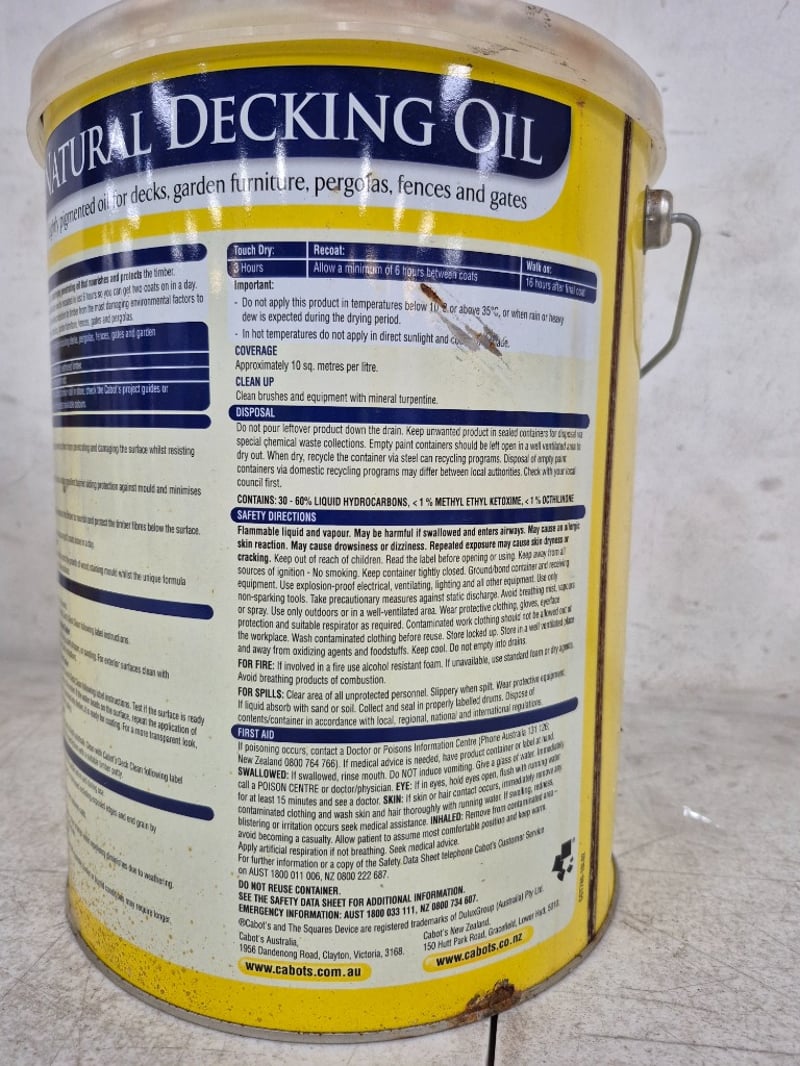 Paint, Cabot's Natural Decking, Exterior, Natural, 10 Litres BID PER LITRE, MUST TAKE 10 LITRES