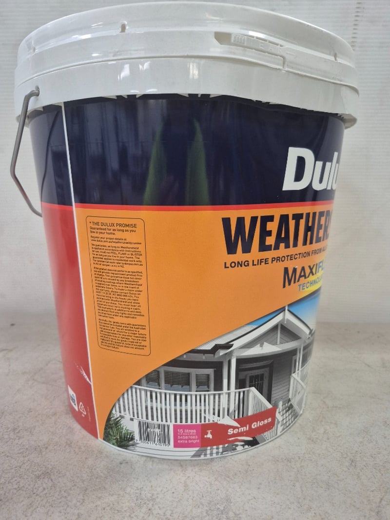Paint: Dulux - Weathershield Maxiflex Technology - Semi Gloss - Extra Bright - 15LBID PER LITRE MUST TAKE 15 LITRES