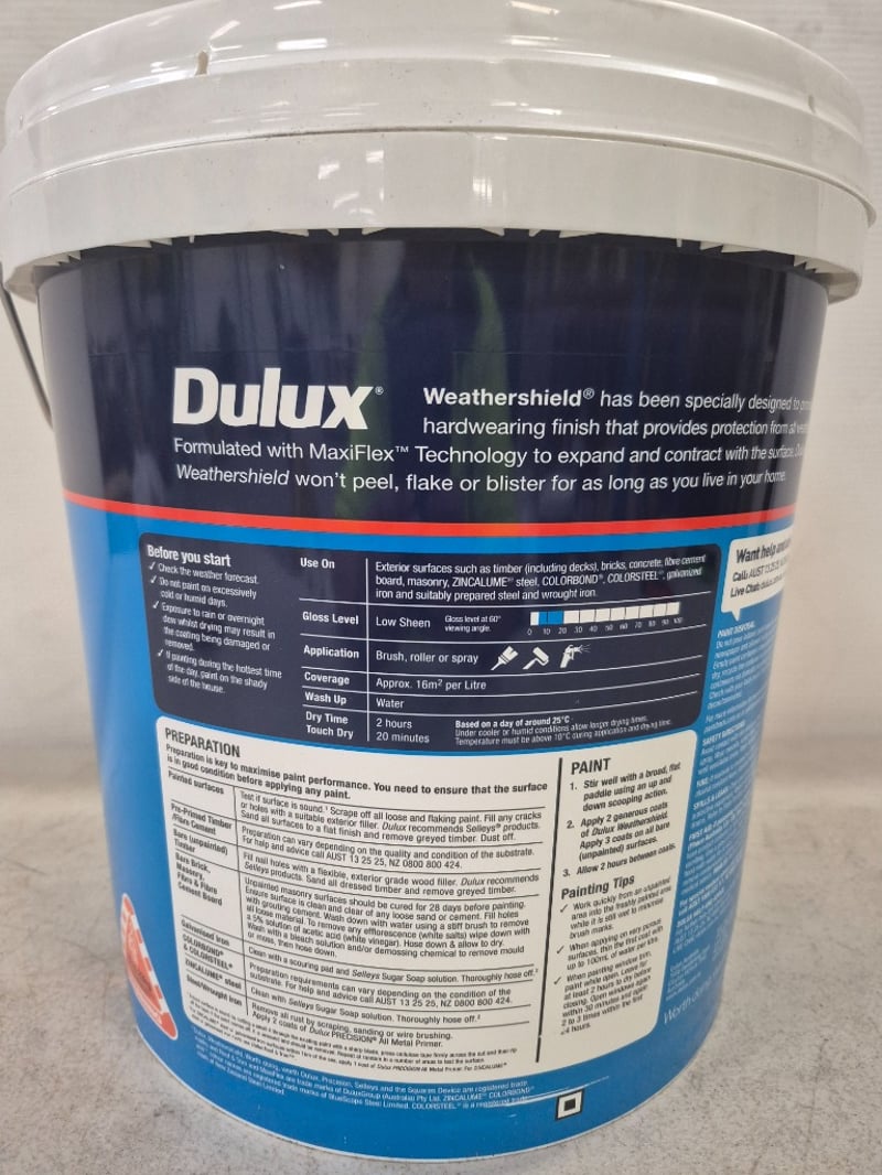 Paint: Dulux - Weathershield Maxiflex Technology - Low Sheen - Vivid White - 15L