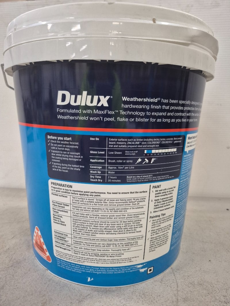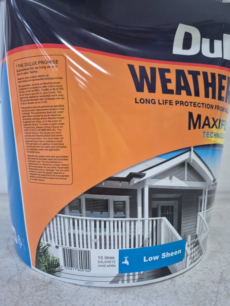 Paint: Dulux - Weathershield Maxiflex Technology - Low Sheen - Vivid White - 15L