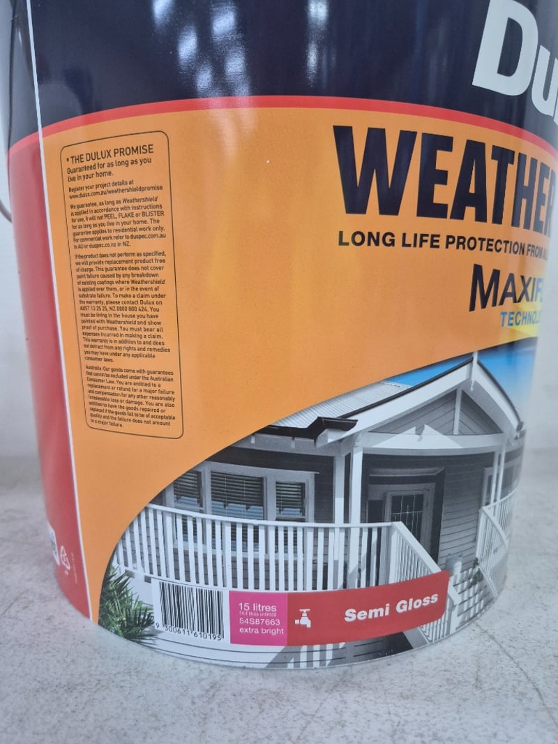 Paint: Dulux - Weathershield Maxiflex Technology - Semi Sheen - Extra Bright - 15LBID PER LITRE MUST TAKE 15 LITRES