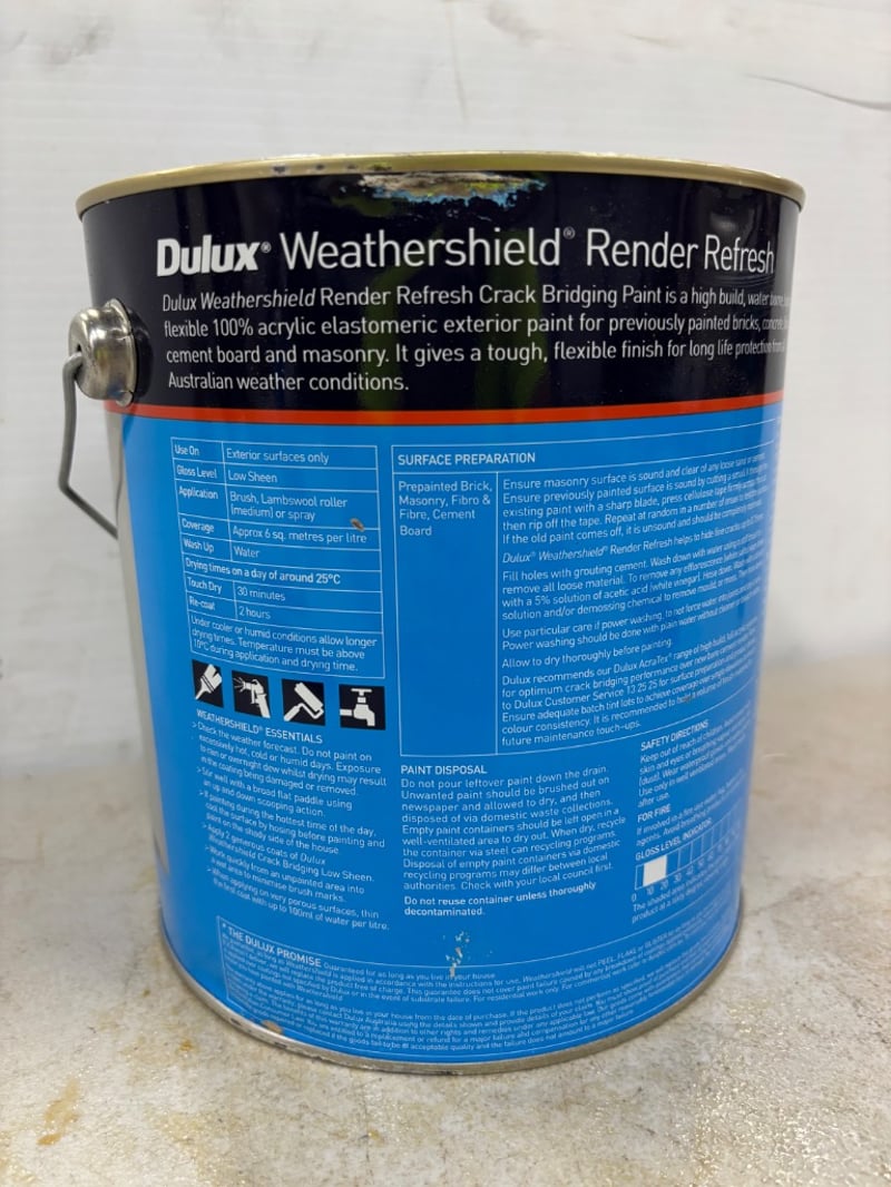 Paint, Dulux, Weathershield, Render Refresh, Low Sheen, Light, Untinted, 4 Litres