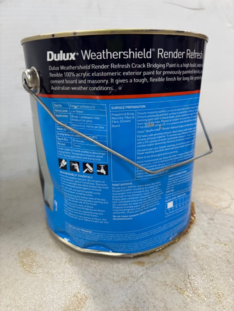 Paint, Dulux, Weathershield, Render Refresh, Low Sheen, Light, Untinted, 4 Litres