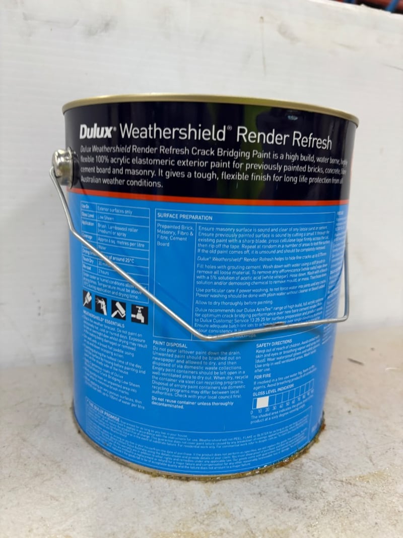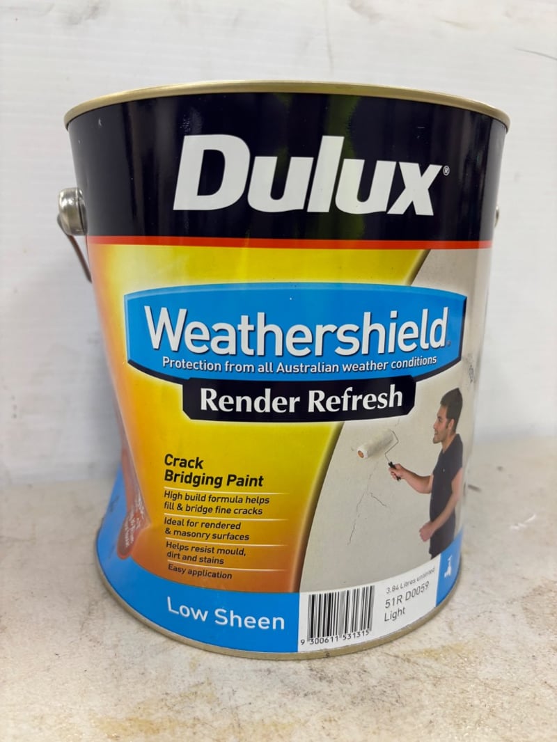Paint, Dulux, Weathershield, Render Refresh, Low Sheen, Light, Untitled, 4 LitresBID PER LITRE, MUST TAKE 4 LITRES