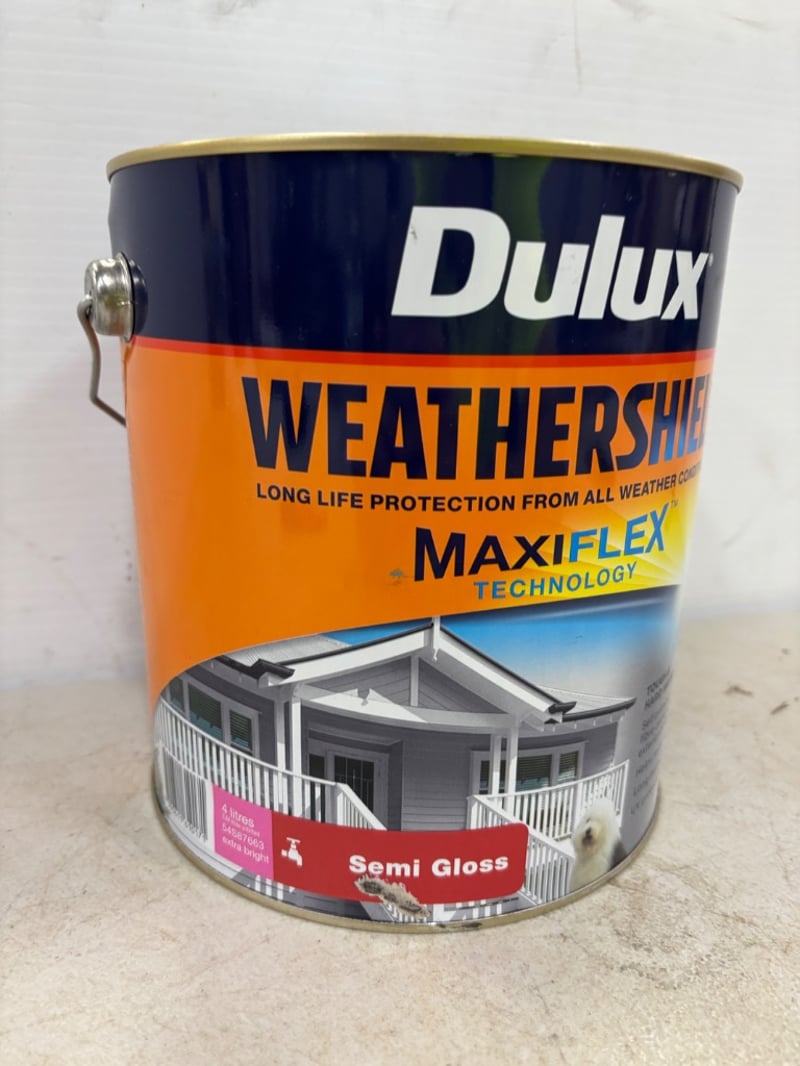 Paint, Dulux Weathershield, Maxiflex, Semi Gloss, Extra Bright, Untinted, 4 Litres