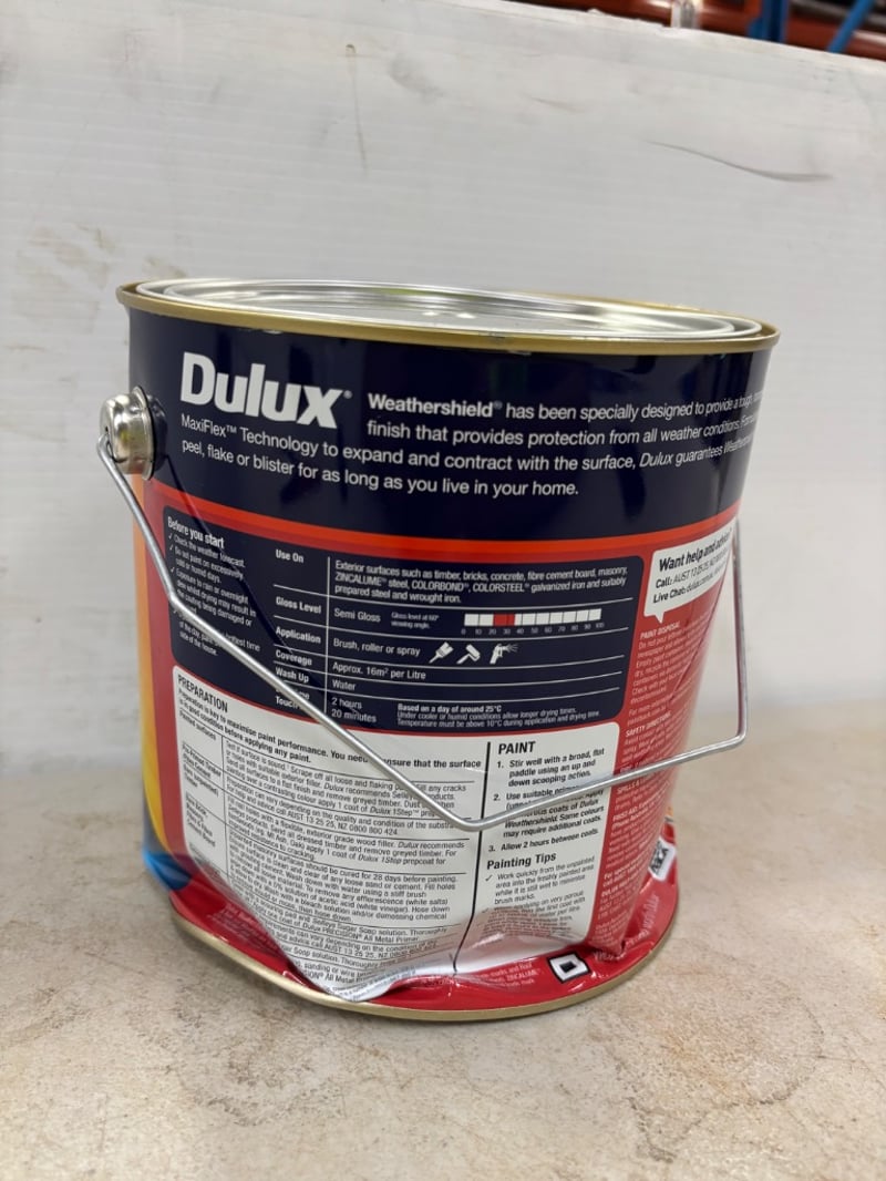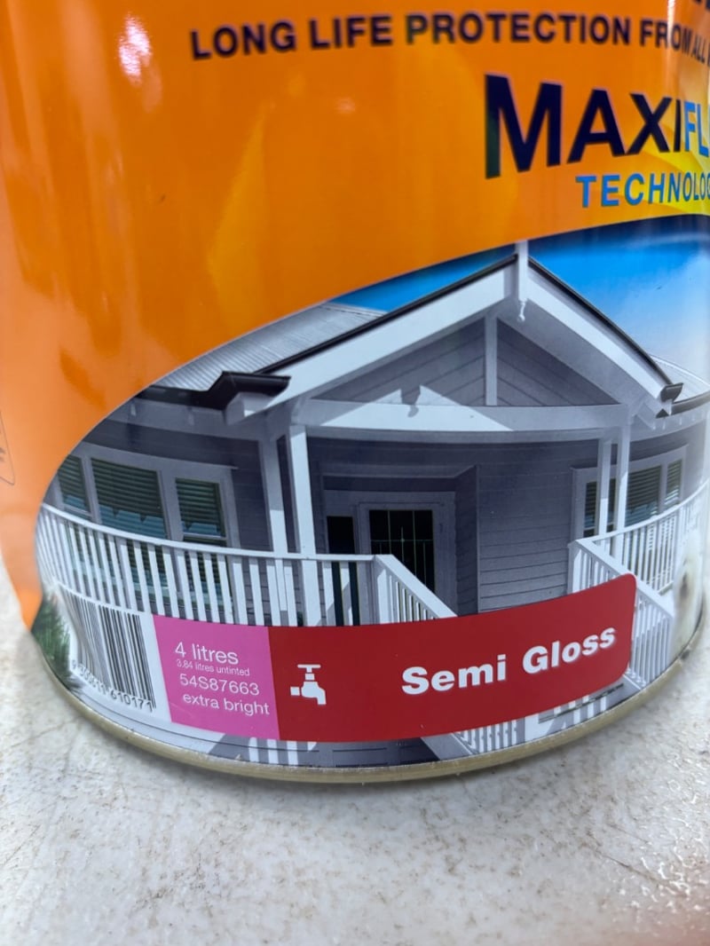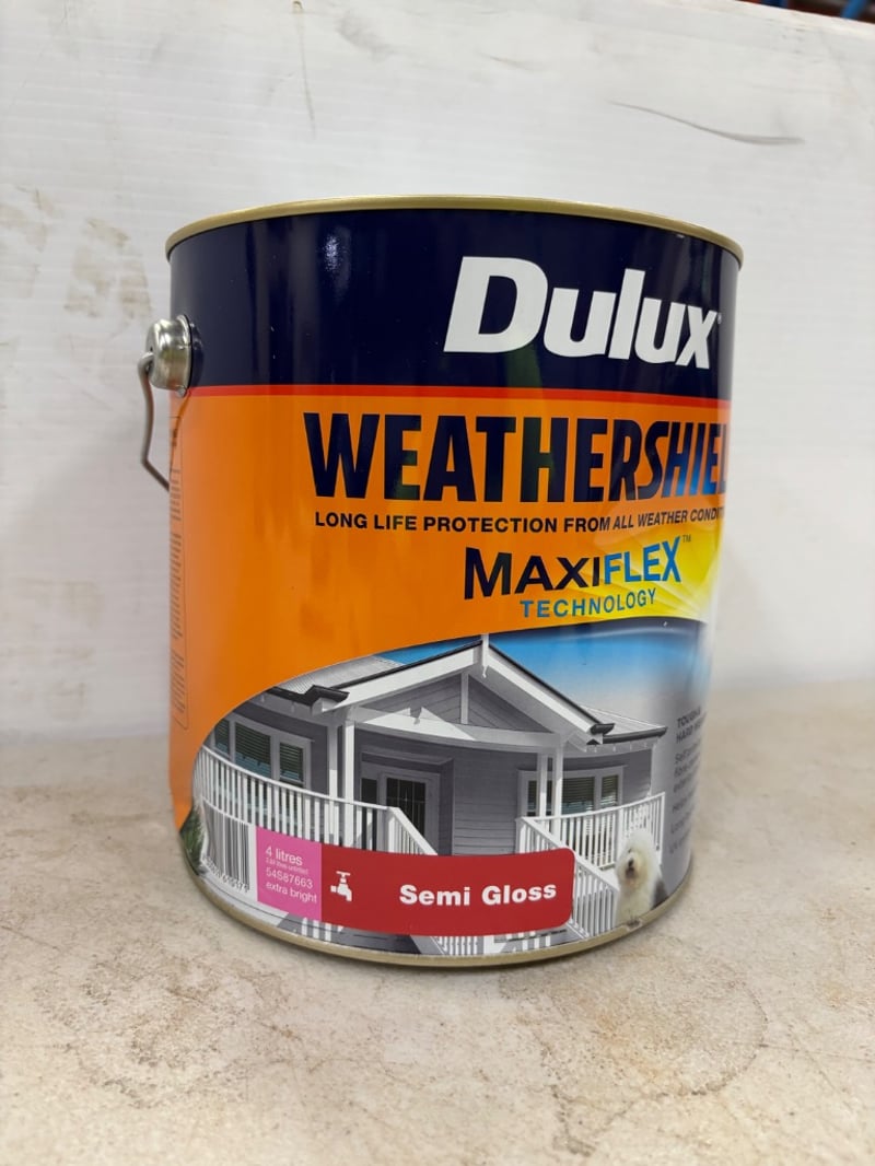 Paint, Dulux Weathershield, Maxiflex, Semi Gloss, Extra Bright, Untinted, 4L