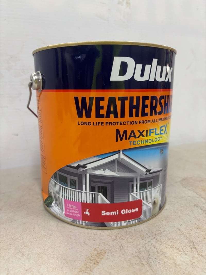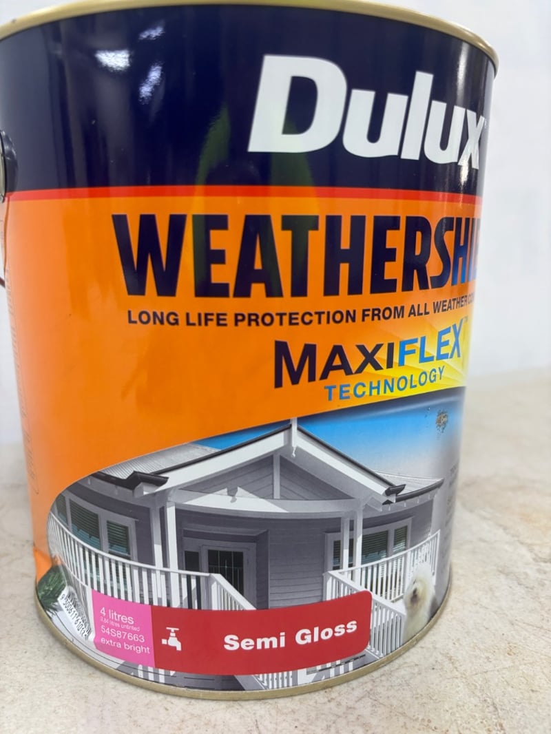Paint, Dulux Weathershield, Maxiflex Technology, Semi Gloss, Extra Bright, Untinted 4 Litres