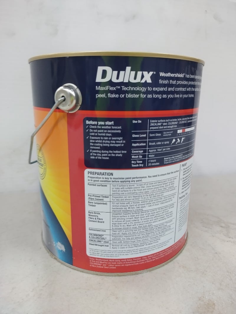 Paint, Dulux Weathershield, Maxiflex Technology, Semi Gloss, Extra Bright, Untinted, 4 Litres
