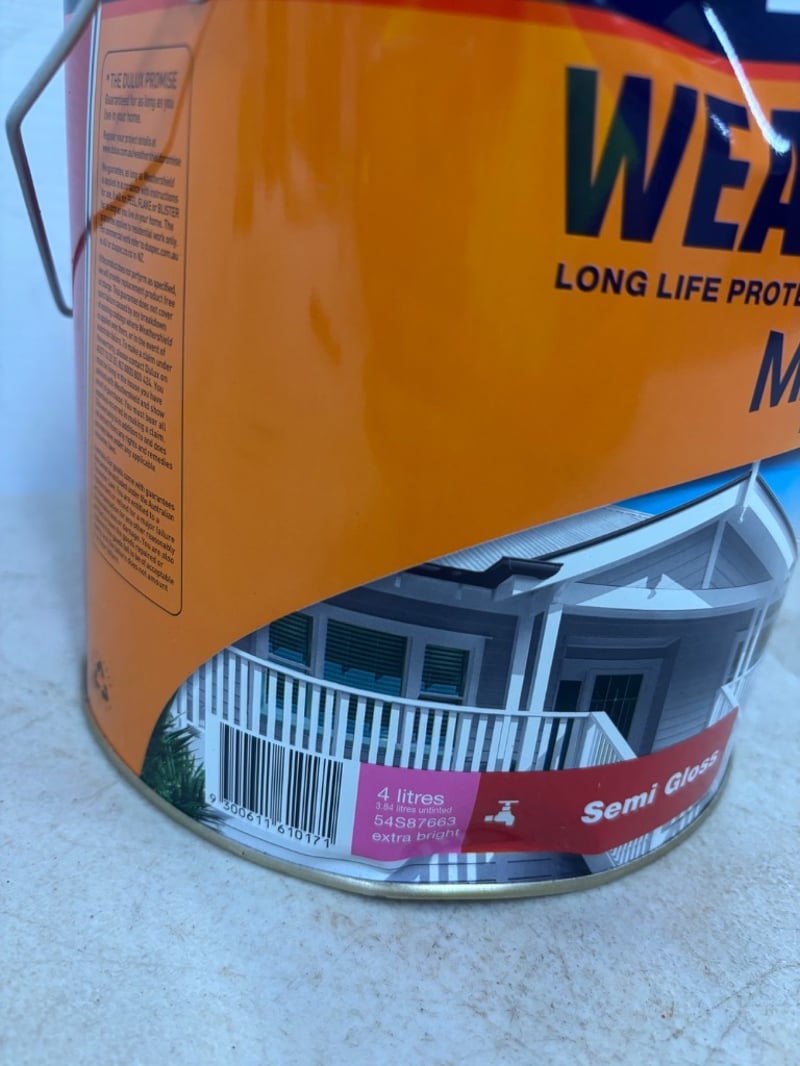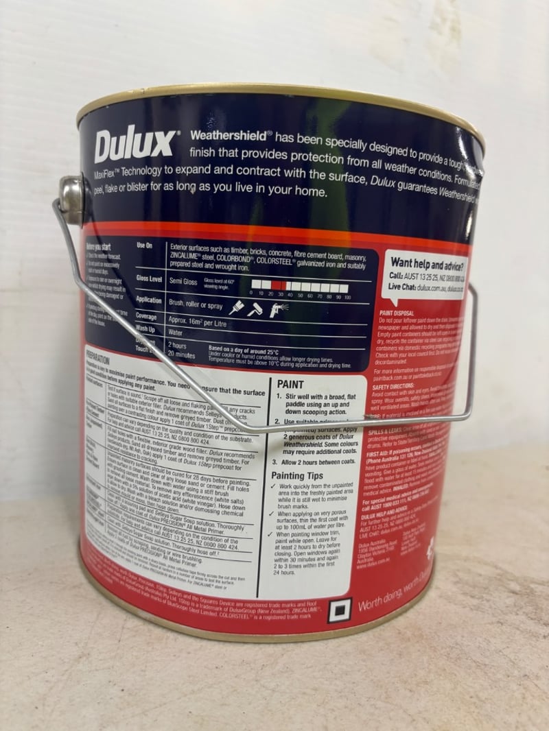 Paint, Dulux Weathershield, Maxiflex Technology, Semi Gloss, Extra Bright, Untinted 4 Litres