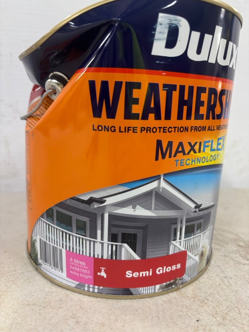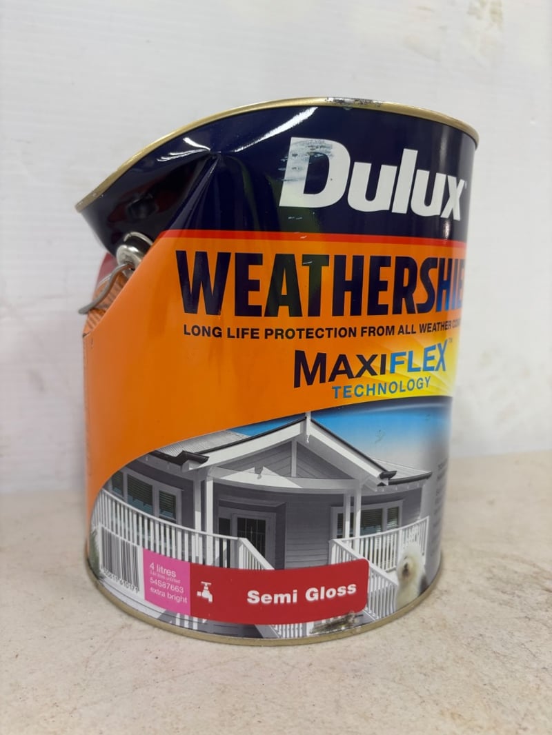 Paint, Dulux Weathershield, Maxiflex Technology, Semi Gloss, Extra Bright, Untinted 4 Litres