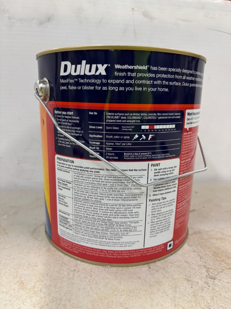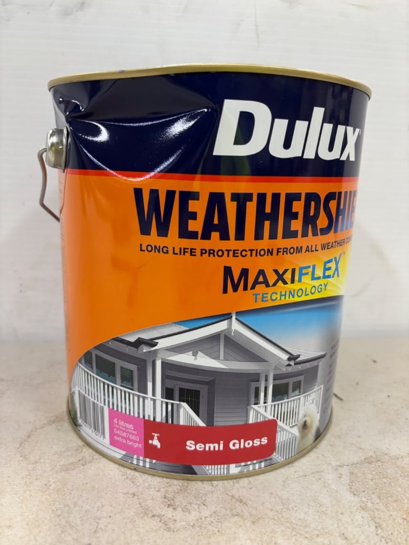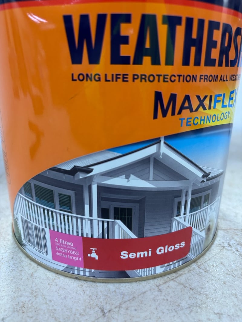 Paint, Dulux Weathershield, Maxiflex, Semi Gloss, Extra Bright, Untinted, 4 LitresBID PER LITRE, MUST TAKE 4 LITRES