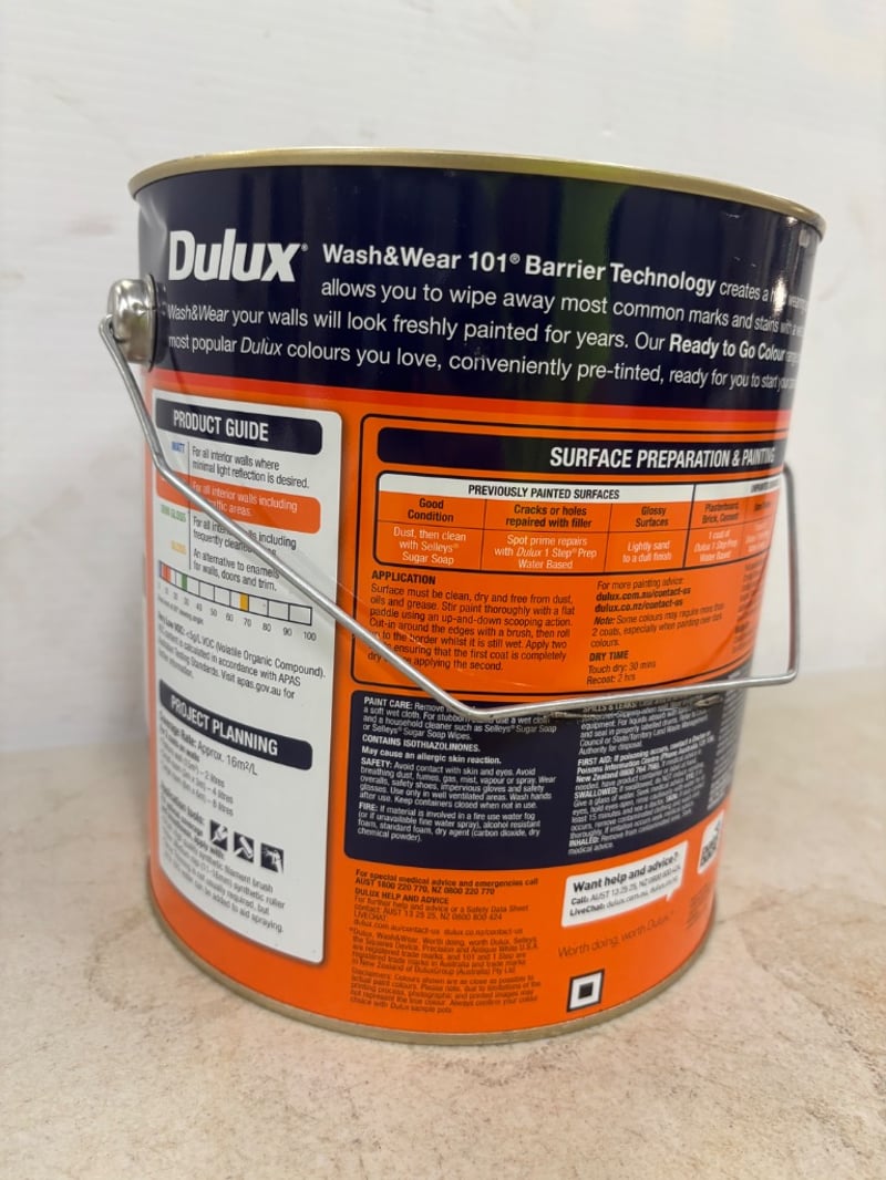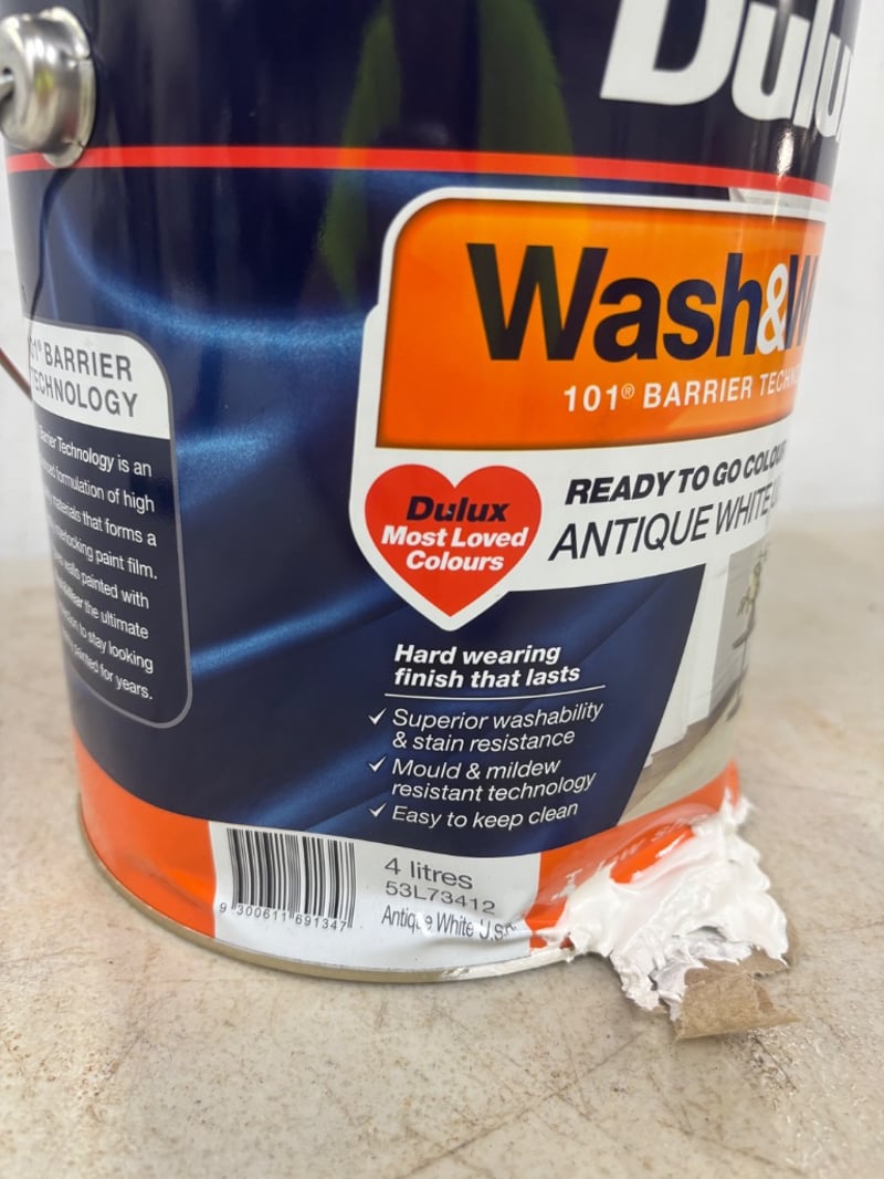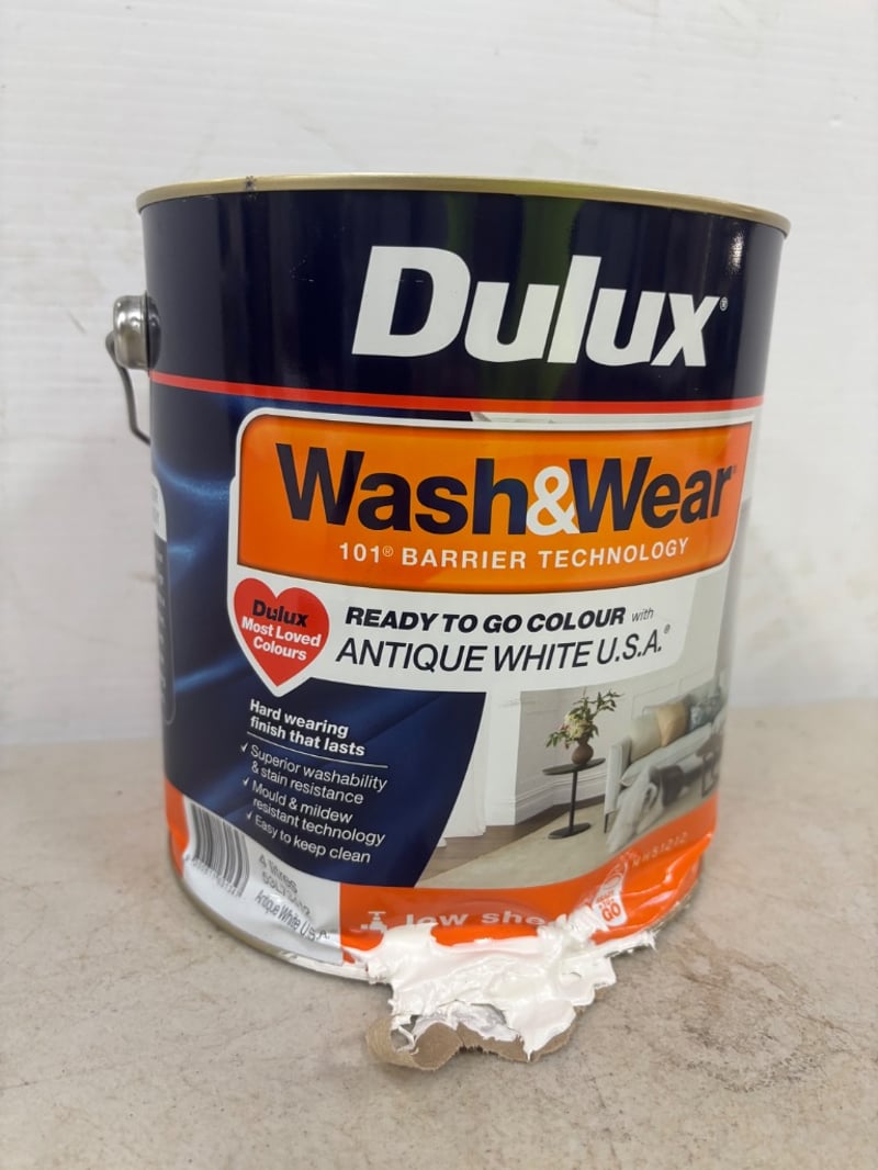 Paint, Dulux Wash&Wear, Low Sheen, Antique White U.S.A, 4 LitresBID PER LITRE, MUST TAKE 4 LITRES
