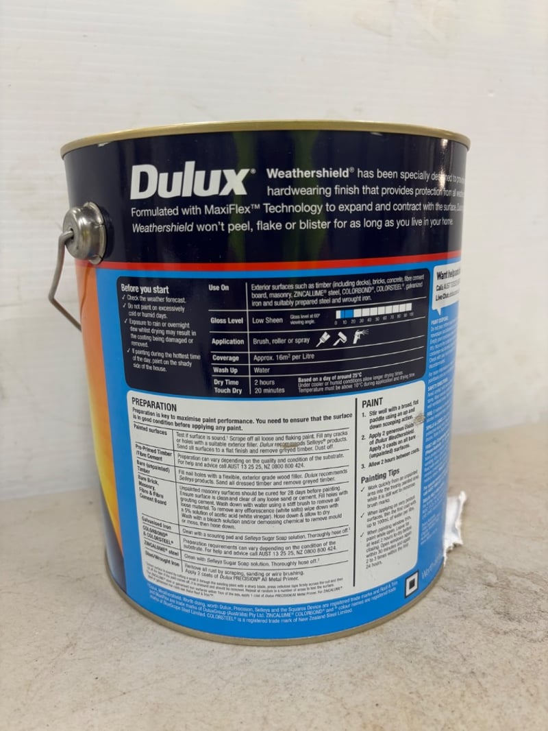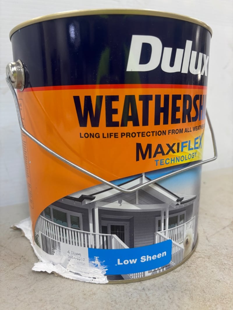 Paint, Dulux Weathershield, Maxiflex Technology, Low Sheen, Vivid White, 4 Litres