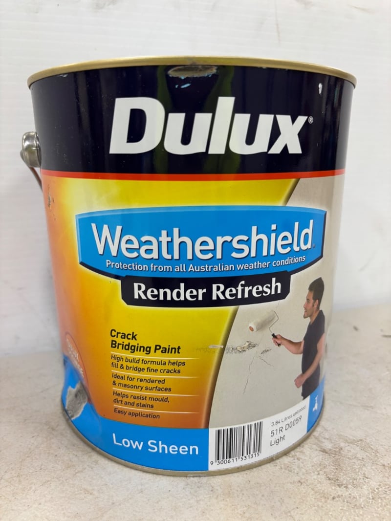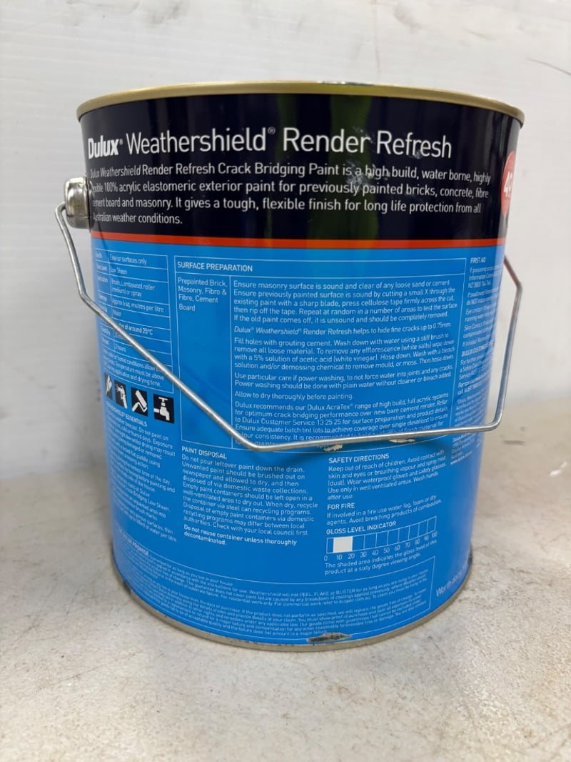 Paint, Dulux, Weathershield, Render Refresh, Low Sheen, Light, Untinted 4 LitresBID PER LITRE, MUST TAKE 4 LITRES