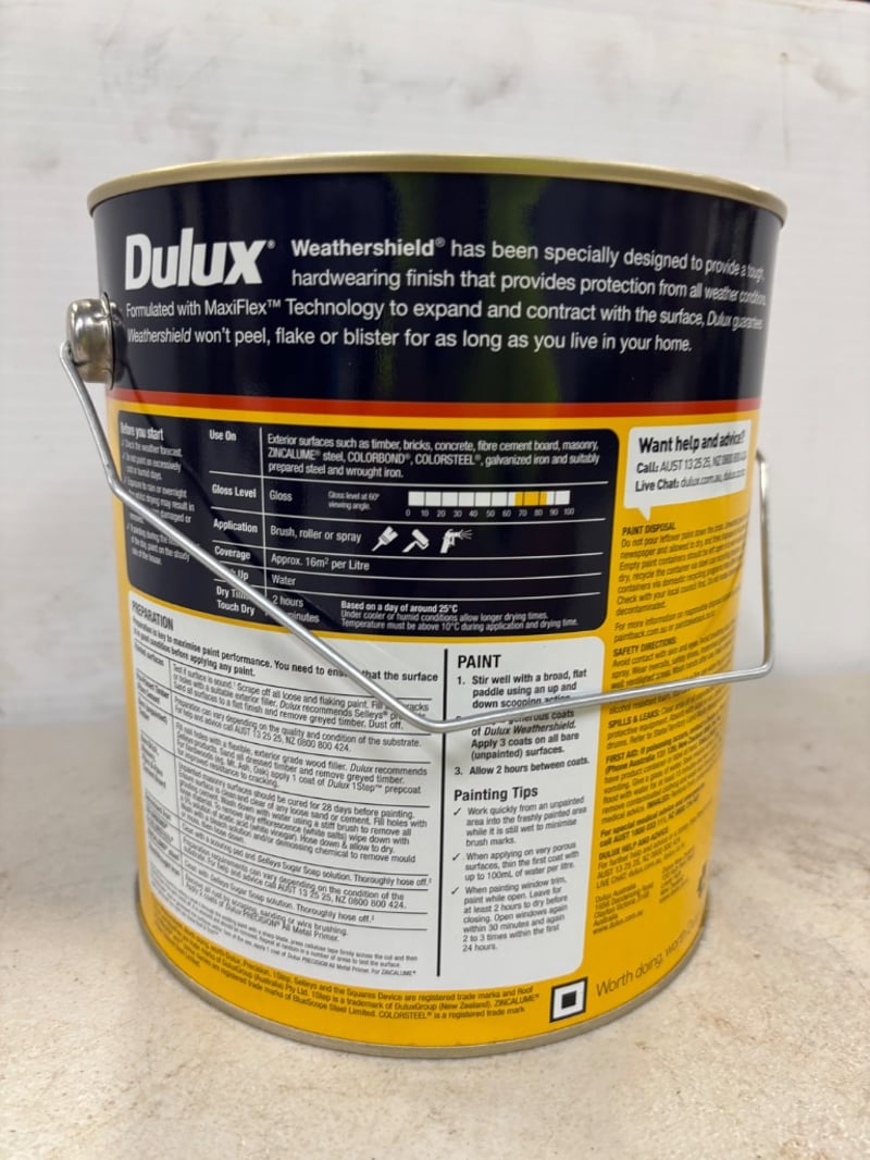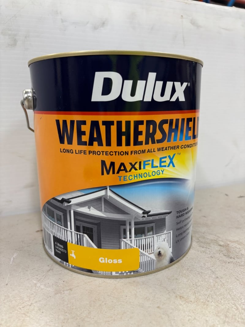 Paint, Dulux Weathershield, Maxiflex, Gloss, Black, 4 LITRESBID PER LITRE, MUST TAKE 4 LITRES