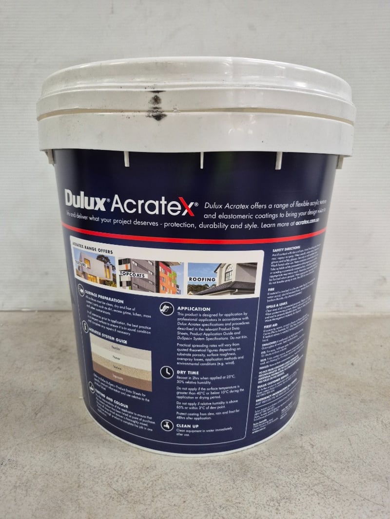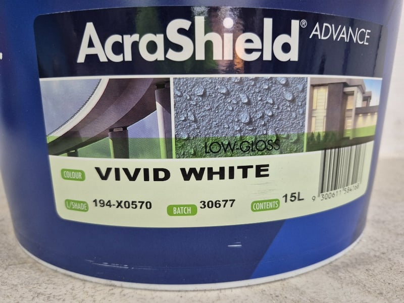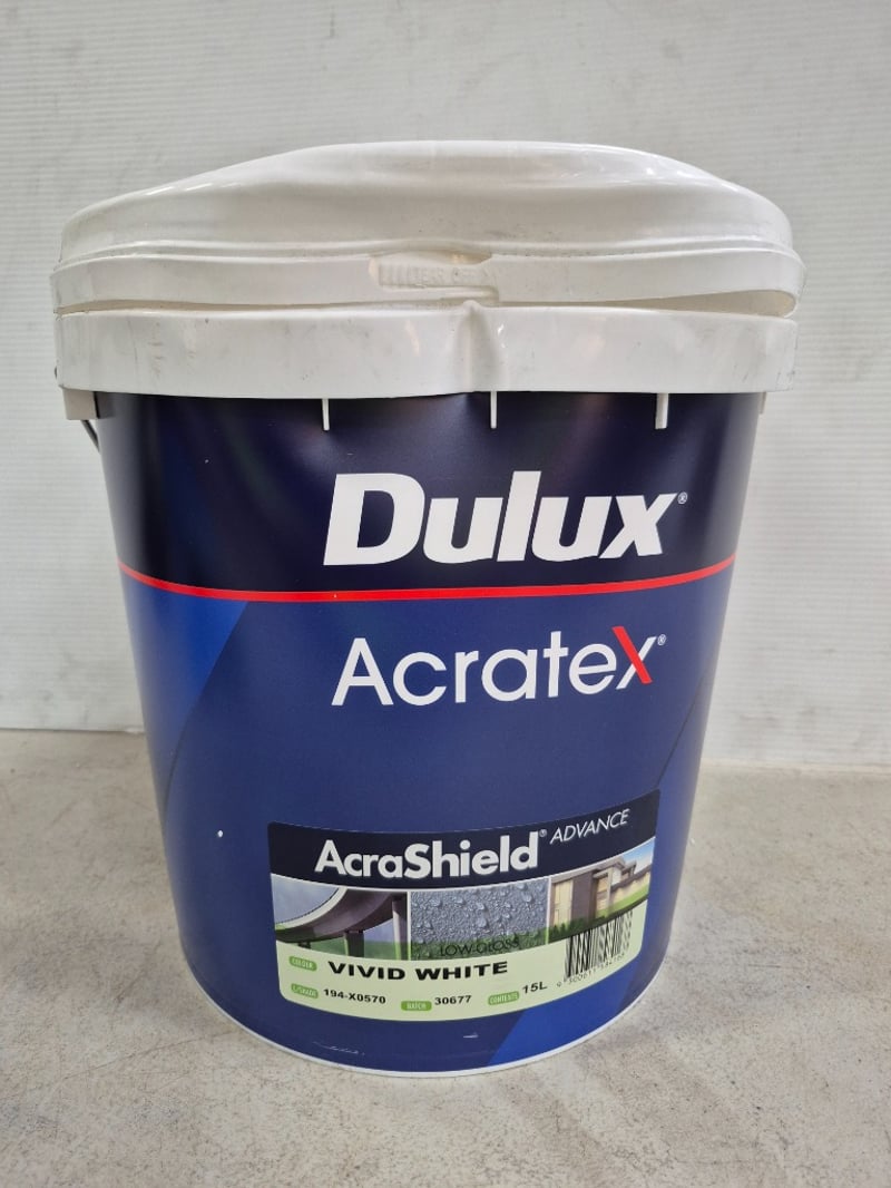 Paint, Dulux, Acratex, AcraShield Advance, Vivid White, 15LBID PER LITRE, MUST TAKE 15 LITRES