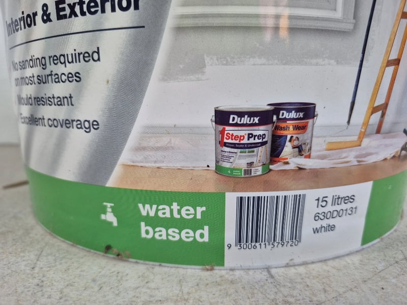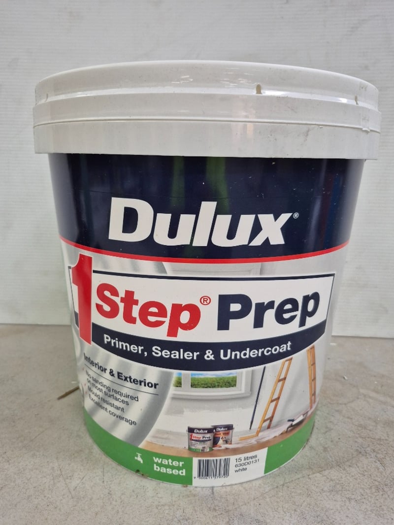 Paint, Dulux, Step Prep, Primer, Sealer & Undercoat, Water Based, White, 15LBID PER LITRE, MUST TAKE 15 LITRES