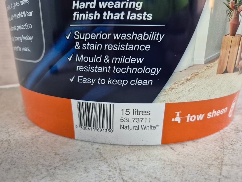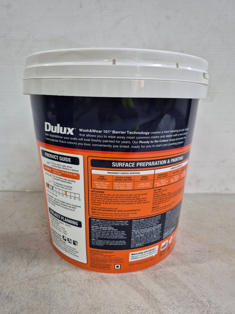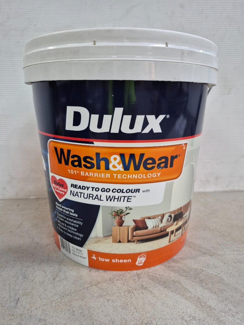 Paint, Dulux, Wash&Wear, 101 Barrier Technology, Low Sheen, Natural White, 15LBID PER LITRE, MUST TAKE 15 LITRES