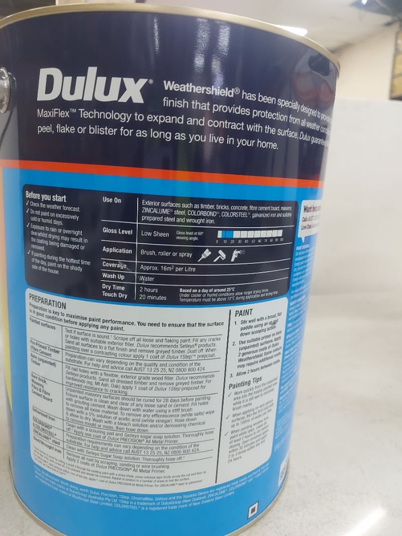 Paint, Dulux, WEATHERSHIELD, true red, Low Sheen, 10LBID PER LITRE, MUST TAKE 10 LITRES