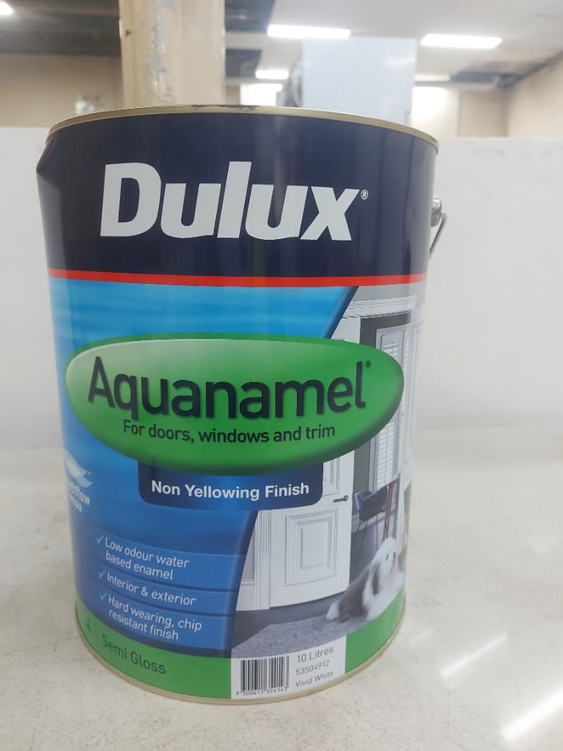 Paint, Dulux, Aquanamel, vivid white, Semi Gloss, 10LBID PER LITRE, MUST TAKE 10 LITRES