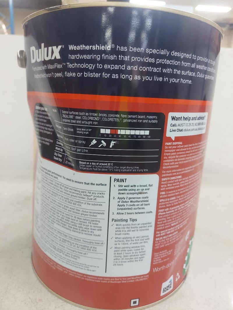 Paint, Dulux, WEATHERSHIELD, ultra deep, Semi Gloss, 10LBID PER LITRE, MUST TAKE 10 LITRES