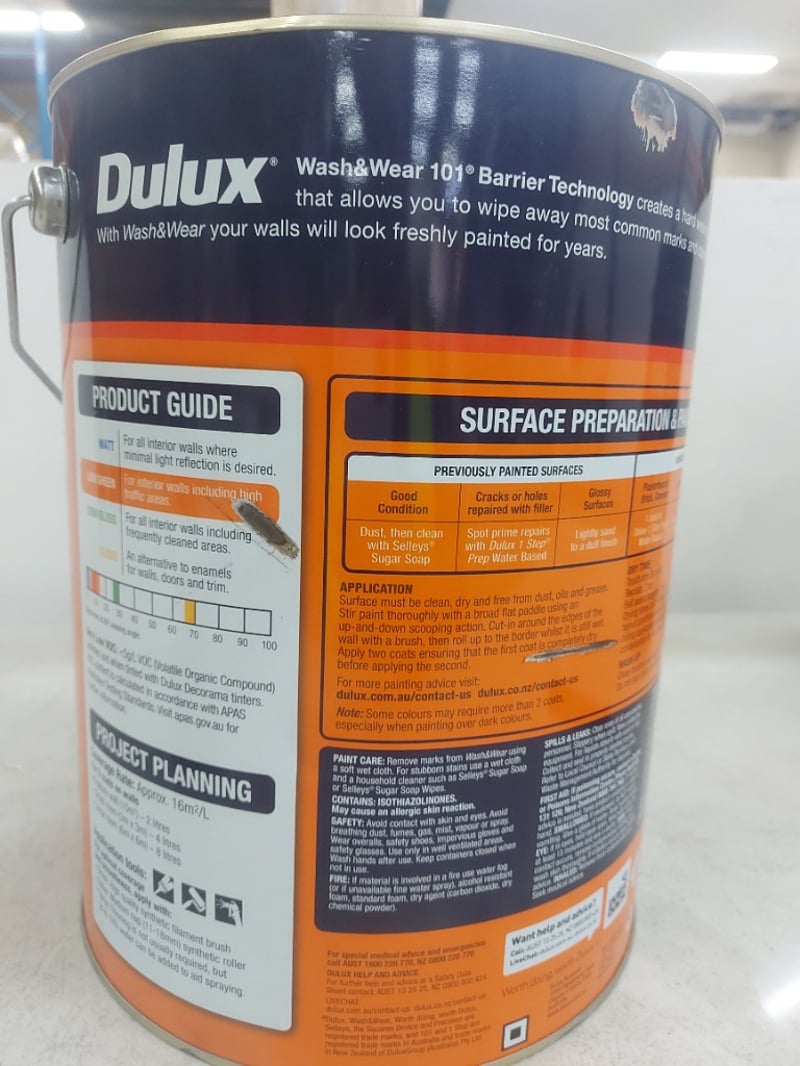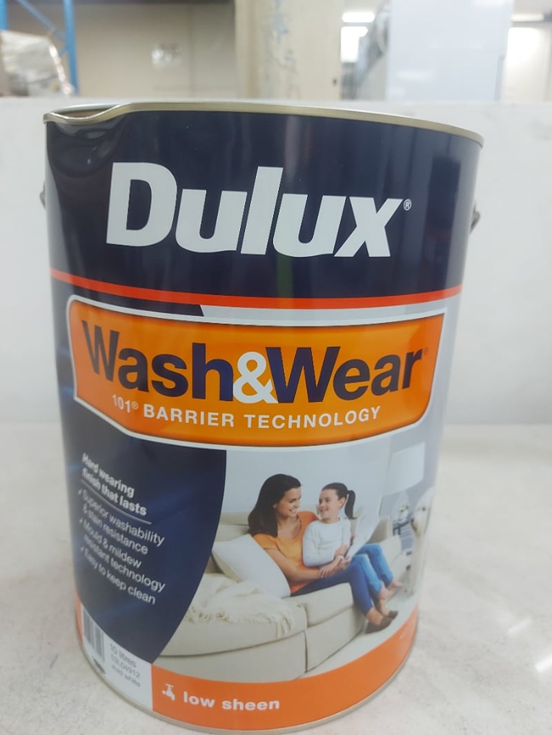 Paint, Dulux, Wash & Wear, vivid white, low sheen, 10L