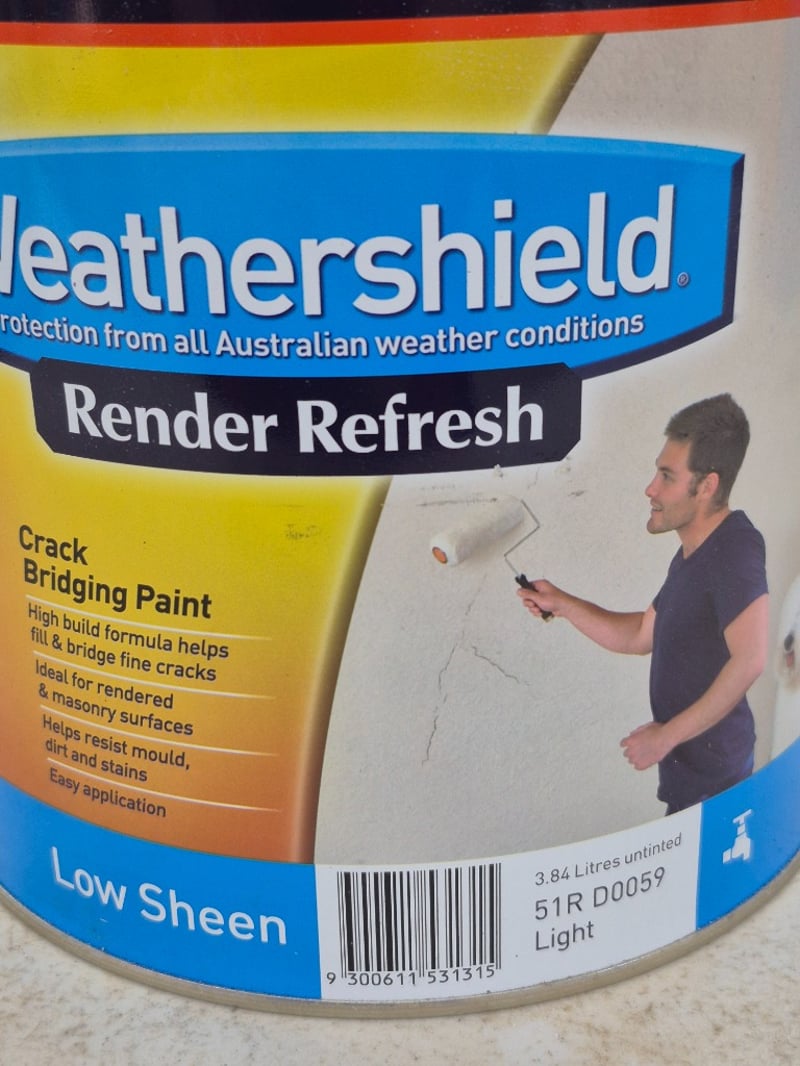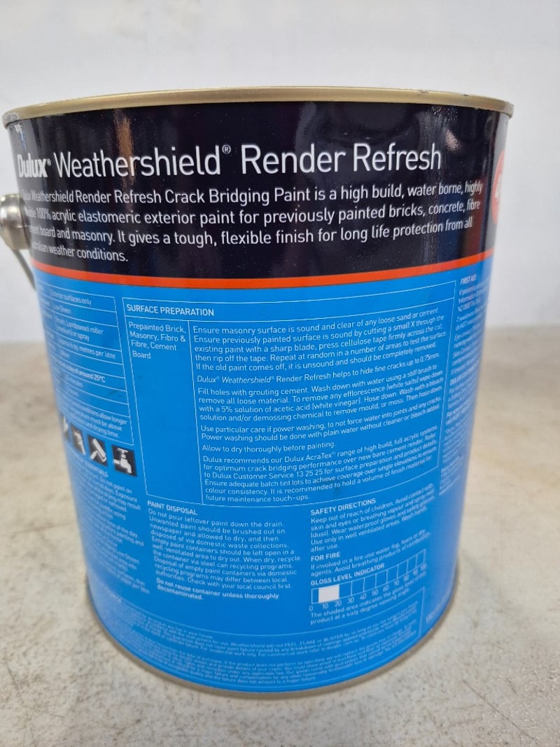 Paint, Dulux Weathershield, Render Refresh, Low Sheen, untinted 4LBID PER LITRE, MUST TAKE 4 LITRES