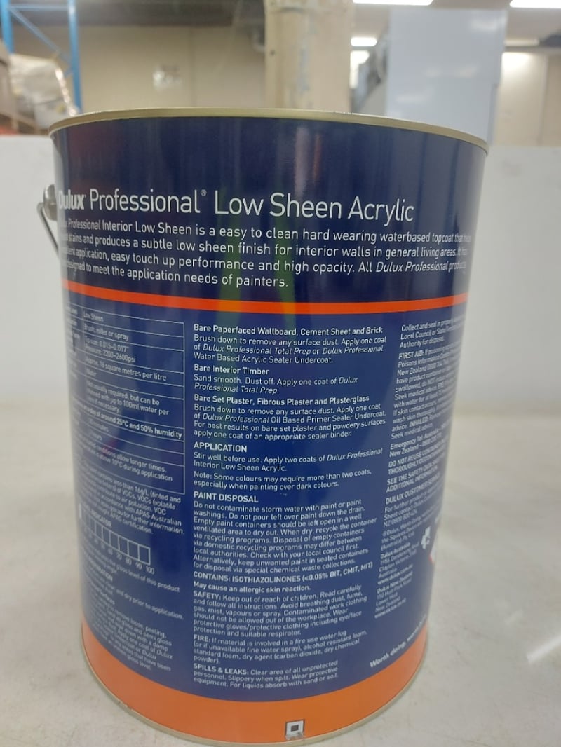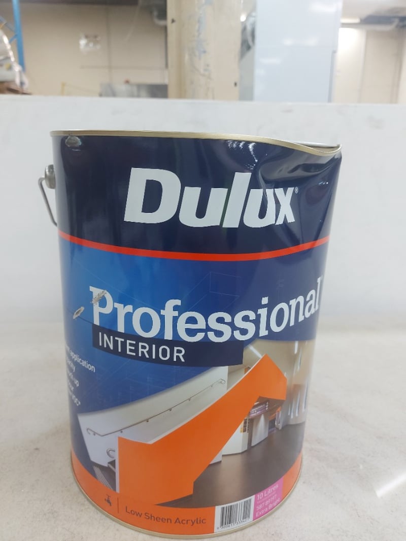 Paint, Dulux, Professional interior, Extra Bright, Low Sheen Acrylic, 10LBID PER LITRE, MUST TAKE 10 LITRES