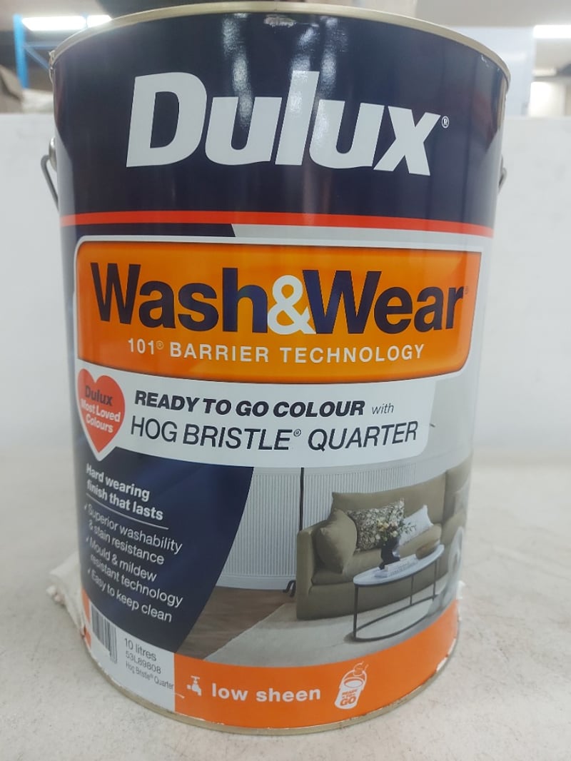 Paint, Dulux, Wash & Wear, Hog Bristle Quarter, Low Sheen, 10LBID PER LITRE, MUST TAKE 10 LITRES