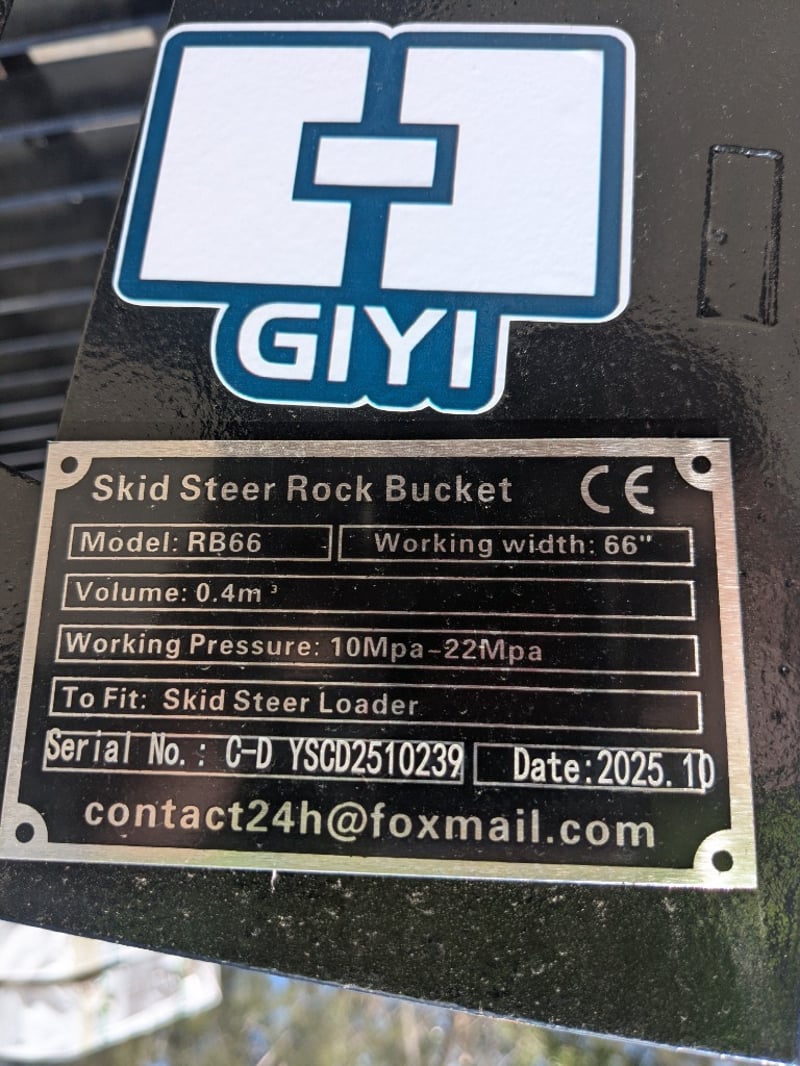 FACTORY DIRECT** 2025 Unused GIYI GY-RB66, Skid Steer Rock Bucket