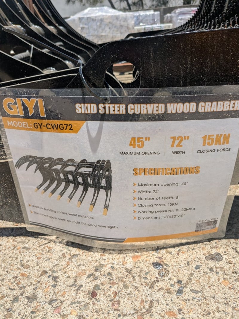 FACTORY DIRECT** 2025 Unused GIYI GY-CLG72 Skid Steer GrappleMake: GIYI Model: CLG72 Body: Skid Steer GrappleWorking Width: 72"Working Pressure: -10Mpa - 22MpaTo Fit: Skid Steer LoaderS/N: C-HXZMQ2510288For more information Contact King Cheung on 0477987576 or [email protected]Note: OEM images and VIDEOS shown are for illustration purposes only, and used as a guide only, inspections highly recommended. NOTE: Delayed collection due to the Holiday period, collection to occur from Monday the 5th of January