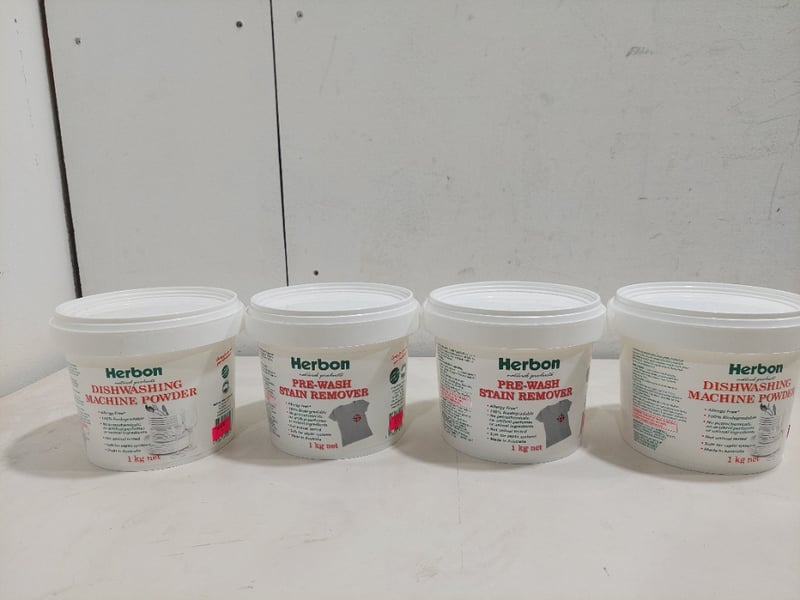 Herbon pre-wash stain remover and dishwashing machine powder.