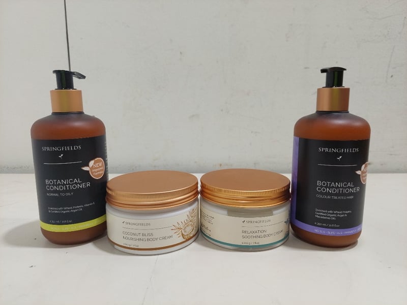 Assorted health and wellness products, including: Springfields botanical conditioner and body cream.Sold as a lot.