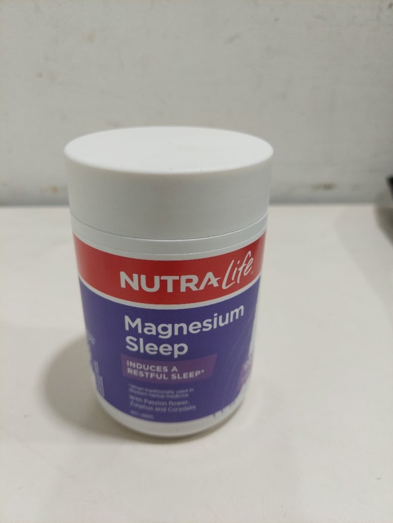Assorted health and wellness products, including: Nutra life magnesium hi-zorb and magnesium sleep.