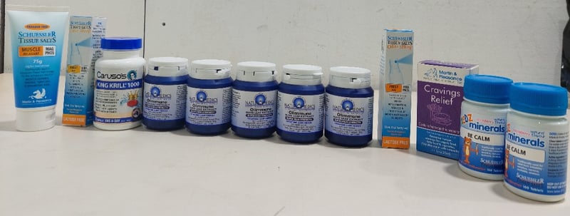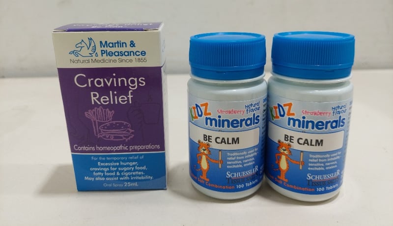 Assorted health and wellness products, including: kidz minerals be calm, cravings relief and more.Sold as a lot.