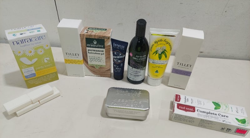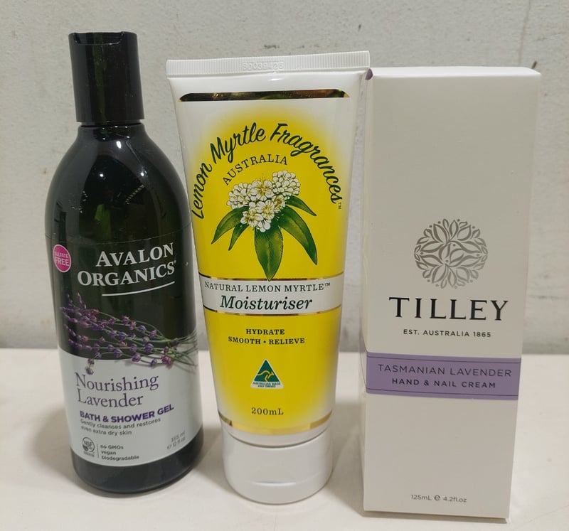 Assorted health and wellness products, including: lavender bath and shower gel, hand and nail cream and more.Sold as a lot.