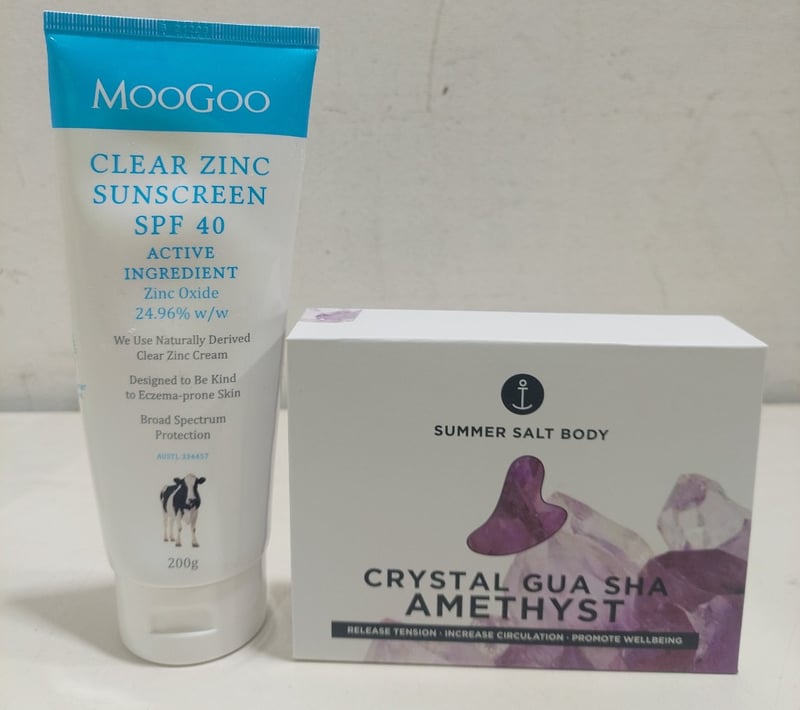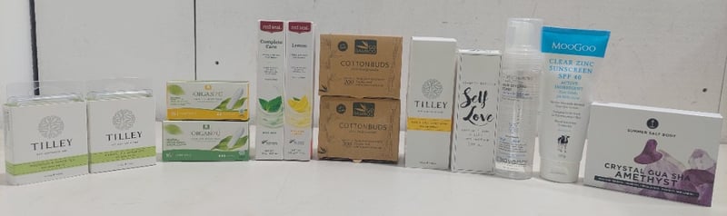 Assorted health and wellness products, including: MooGoo sunscreen, bamboo cotton buds and more.