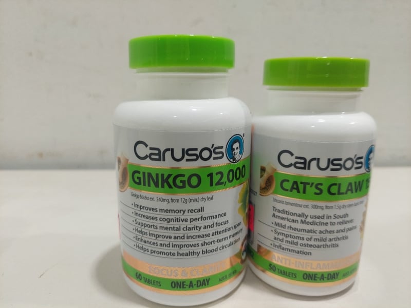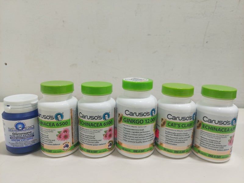 Assorted healtg and wellness items, including: Carus's cats claw 1500 and more.Sold as a lot.