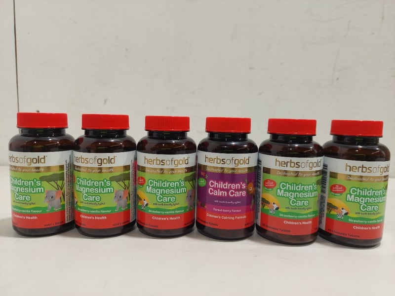 Assorted health and wellnes items including: Herbs of gold childrens calm care and more.