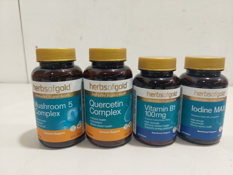 Assorted health and wellnes items including: Vitamin B1, Iodine Max and more.Sold as a lot.