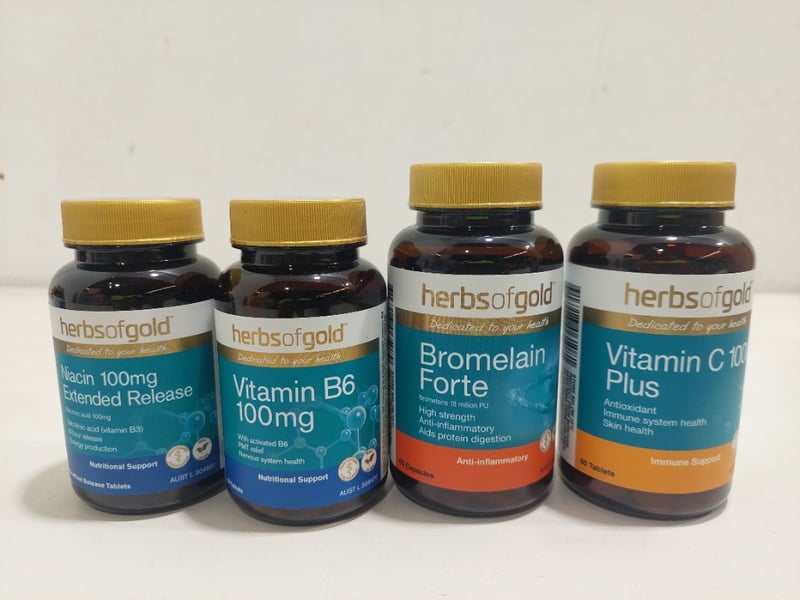 Assorted health and wellnes items including: Vitamin C 1000 plus, Vitamin B6 100mg and more.