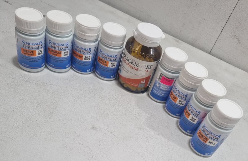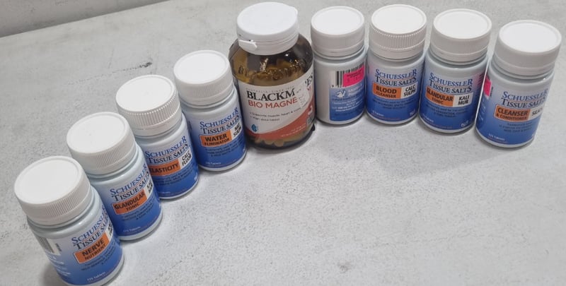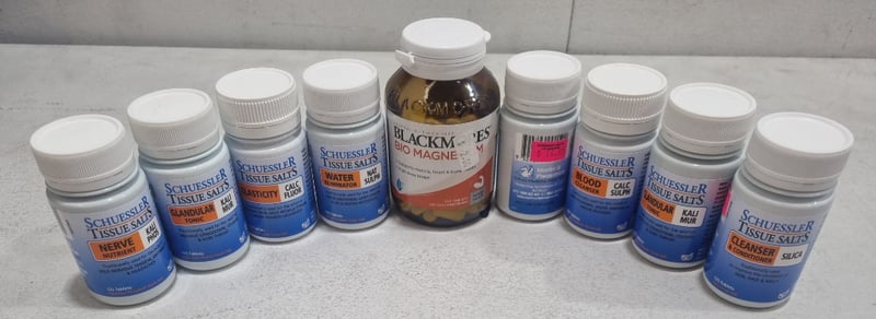 Assorted health and wellness lot, includes Schuessler tissue salts cancer and conditioner, blackmores bio magnesium and more .....Sold as lot