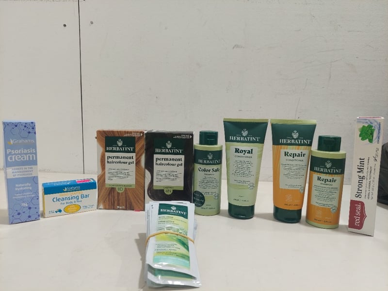 Assorted cosmetic products, including: Hernatint repair shampoo, permanent hair colour gel and more.Sold as a lot.