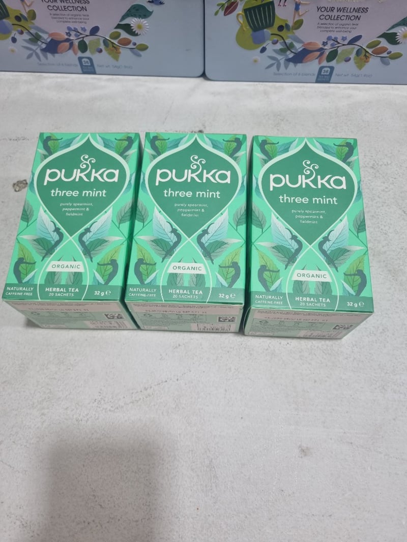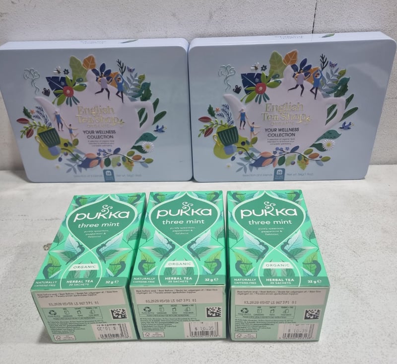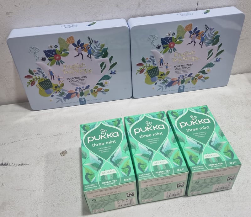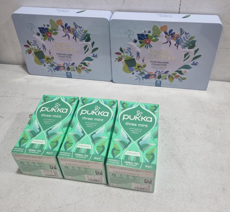 Assorted Organic Tea selections, includes English tea shop and Pukka three mint.