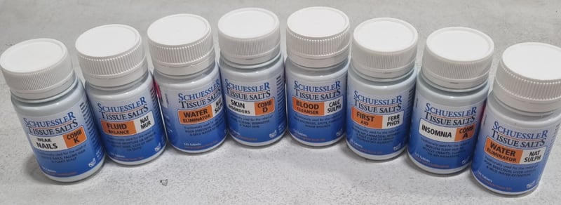 Scheussler Tissue salts lot, includes blood cleanser, skin disorders and more...... Sold as lot