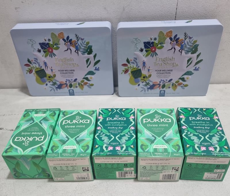 Assorted Organic Tea selection, includes English tea shop and Pukka mint teas....