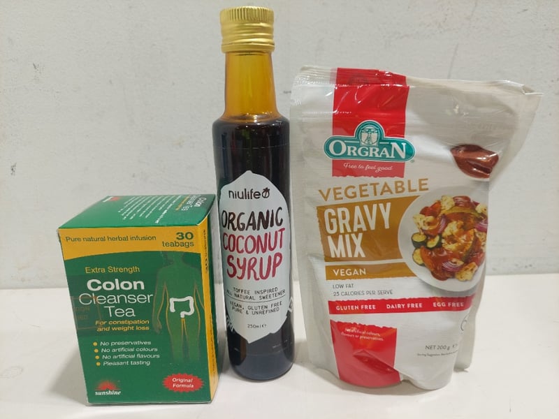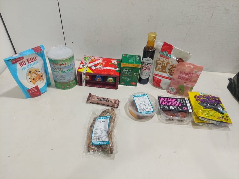Assorted health and wellness pantry items, including: Organ vegetable gravy mix, no egg egg replacer and more.Sold as a lot.